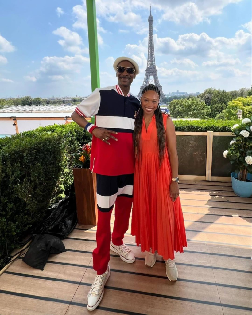 The “Oui outside” shot of the day from Paris! Two of our favorites, Snoop and The Multi-time Olympic Champ, Mother, and Owner of Saysh Shoes, Allyson Felix (Ferguson)! Did you know, Allyson Felix is the most decorated track and field athlete in history. With a record 20 World Championship medals and 11 medals at the Olympic Games – including seven golds – she ranks among the sport’s greats.