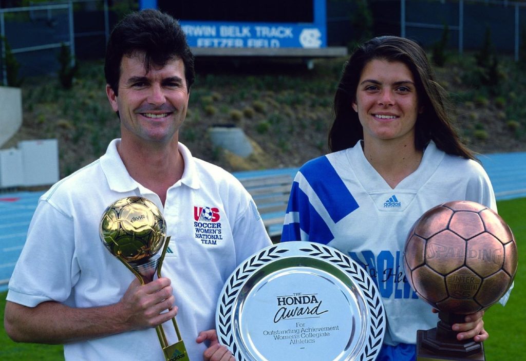 - Mia Hamm (1989-1993): A four-time NCAA national champion and two-time MAC Hermann Trophy winner, Hamm is one of the most iconic figures in women’s soccer history. widely regarded as one of the greatest female soccer players in history. Her career is marked by numerous achievements and contributions to the sport: